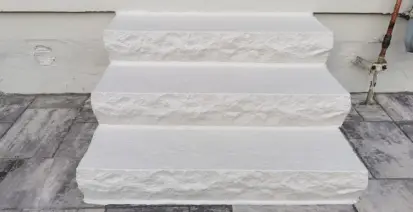 Custom-built, durable steps with color match to porch that provide a solid and safe entryway.